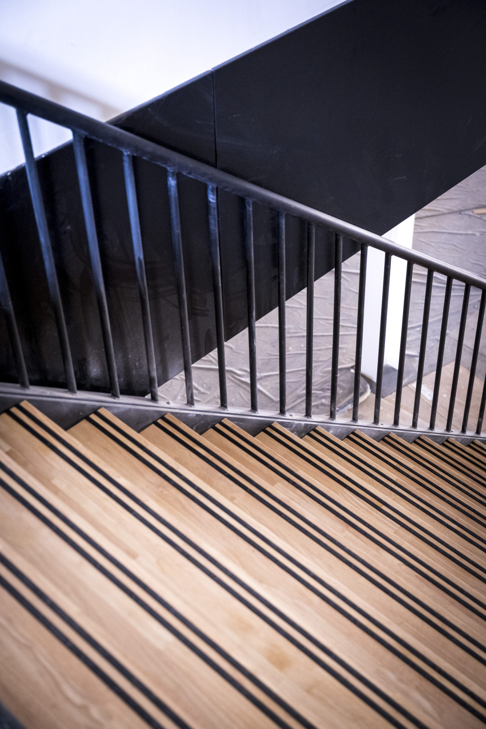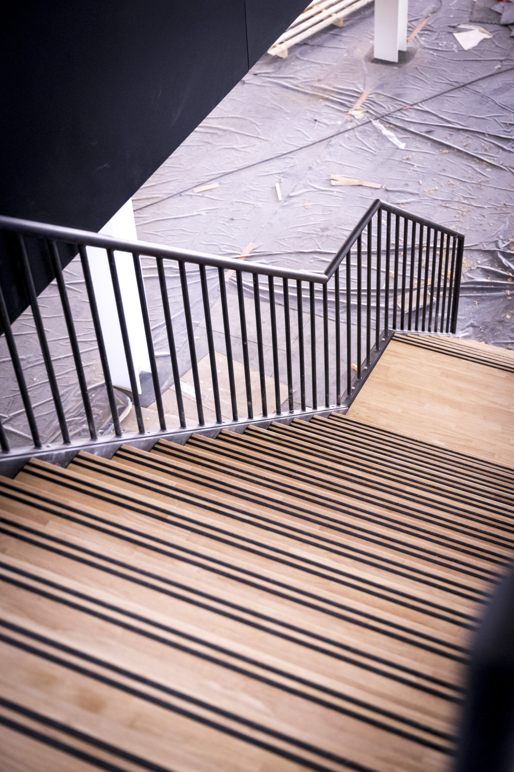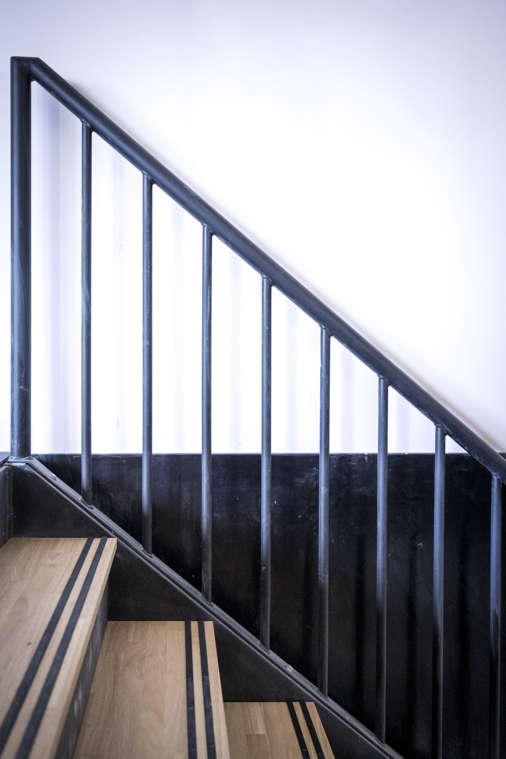 De trap is ontworpen voor intensief gebruik en voorzien van een veilig en stijlvol balustradesysteem, dat zowel stevigheid als esthetiek combineert. Elk element, van de treden tot de leuning en trapwangen, werd met zorg vervaardigd en afgewerkt, zodat het geheel duurzaam en onderhoudsvriendelijk is.